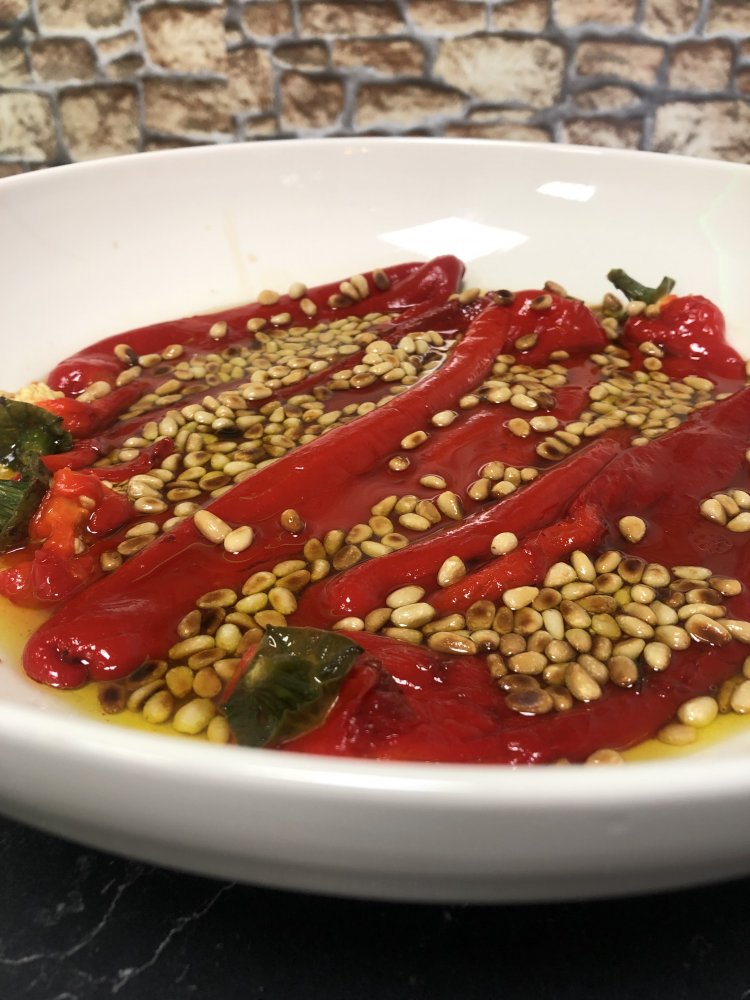 - Obrane papryki przekładamy do miski i zalewamy marynatą przygotowaną z octu, miodu, oliwy z oliwek i soli. Nie żałujcie oliwy – dzięki niej organizm lepiej przyswaja cenne minerały zawarte w papryce.