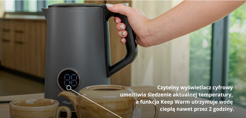 Czytelny wyświetlacz cyfrowy pozwala śledzić aktualną temperaturę, a funkcja Keep Warm utrzymuje wodę ciepłą nawet przez 2 godziny, więc możesz cieszyć się kolejną filiżanką bez ponownego gotowania.
