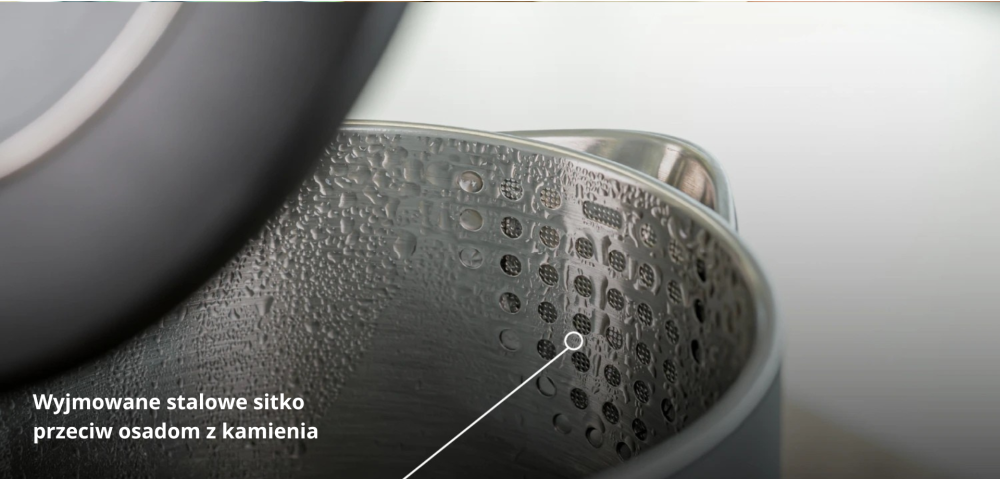 Podwójne ścianki z funkcją Cool Touch utrzymują zewnętrzną część czajnika chłodną, dzięki czemu jest bezpieczny nawet przy wrzącej wodzie. Wewnętrzna stalowa konstrukcja zapewnia szybkie nagrzewanie, odporność na kamień i długą żywotność. Tworzy również efekt termosu, dzięki czemu woda pozostaje ciepła dłużej po wyłączeniu czajnika.